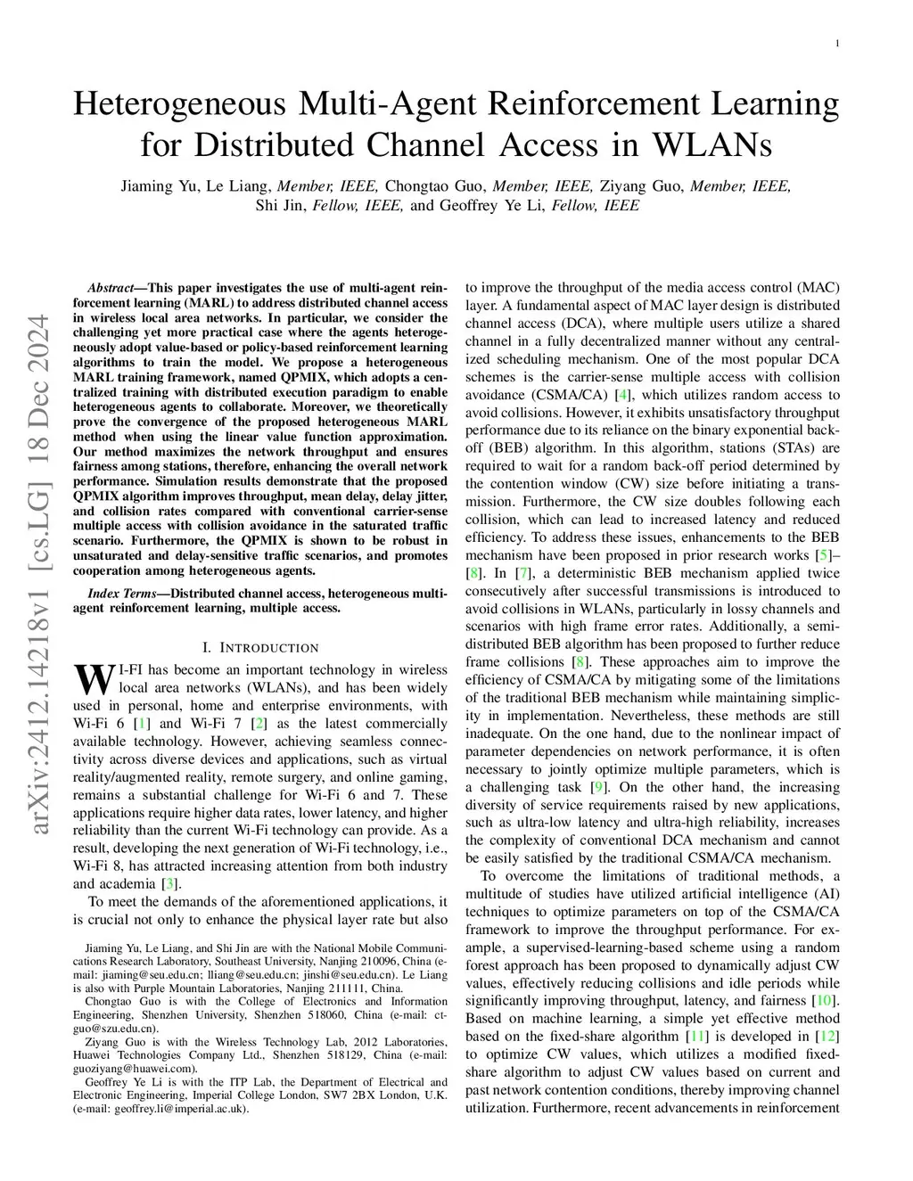 Heterogeneous Multi-Agent Reinforcement Learning for Distributed Channel Access in WLANs