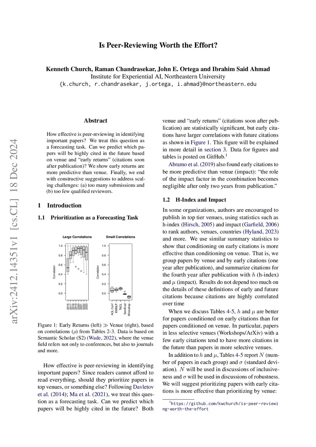 How effective is peer-reviewing in identifying important papers? We treat this question as a forecasting task. Can we predict which papers will be highly cited in the future based on venue and "early returns" (citations soon after publication)? We show early returns are more predictive than venue. Finally, we end with constructive suggestions to address scaling challenges: (a) too many submissions and (b) too few qualified reviewers.