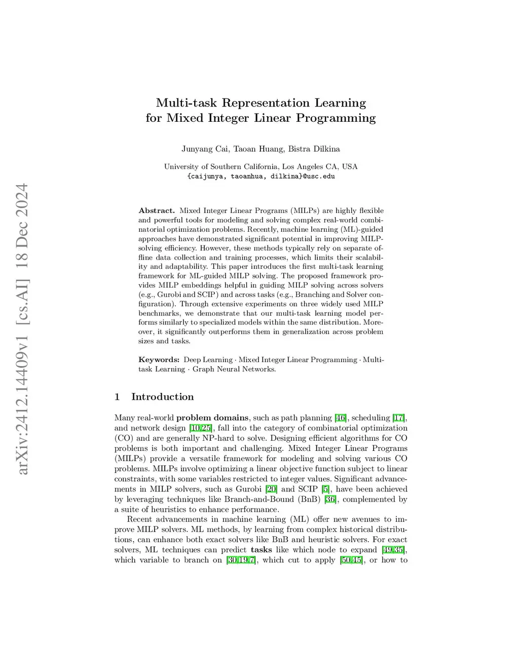 Multi-task Representation Learning for Mixed Integer Linear Programming
