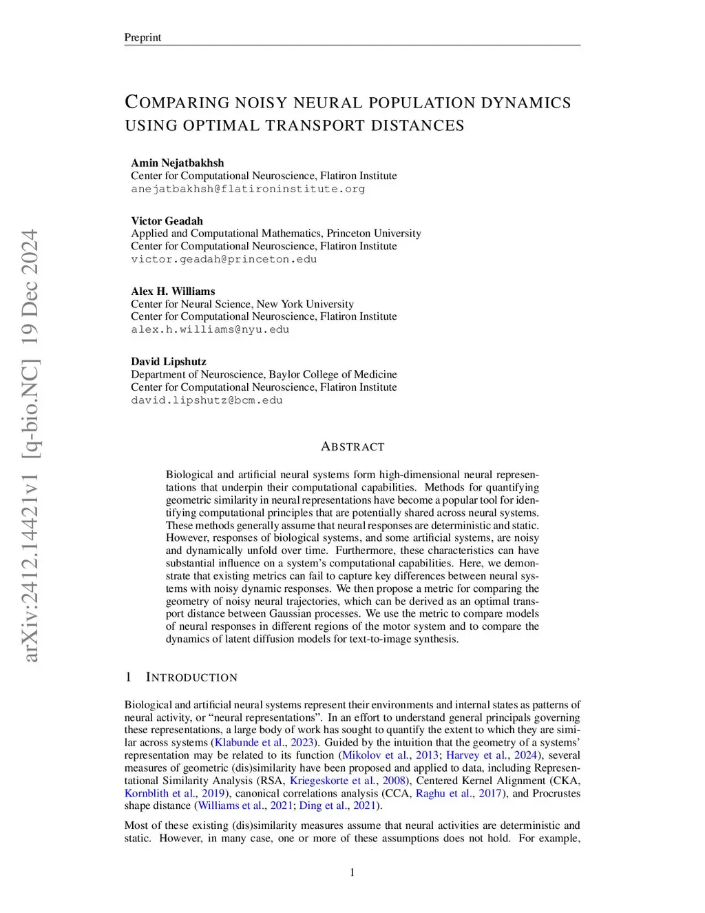 Biological and artificial neural systems form high-dimensional neural representations that underpin their computational capabilities. Methods for quantifying geometric similarity in neural representations have become a popular tool for identifying computational principles that are potentially shared across neural systems. These methods generally assume that neural responses are deterministic and static. However, responses of biological systems, and some artificial systems, are noisy and dynamically unfold over time. Furthermore, these characteristics can have substantial influence on a system's computational capabilities. Here, we demonstrate that existing metrics can fail to capture key differences between neural systems with noisy dynamic responses. We then propose a metric for comparing the geometry of noisy neural trajectories, which can be derived as an optimal transport distance between Gaussian processes. We use the metric to compare models of neural responses in different regions of the motor system and to compare the dynamics of latent diffusion models for text-to-image synthesis.