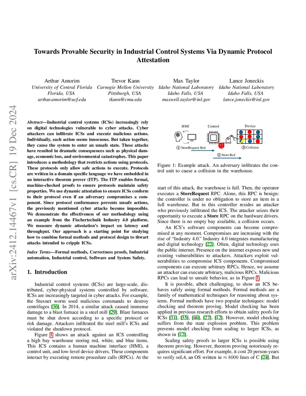 Towards Provable Security in Industrial Control Systems Via Dynamic