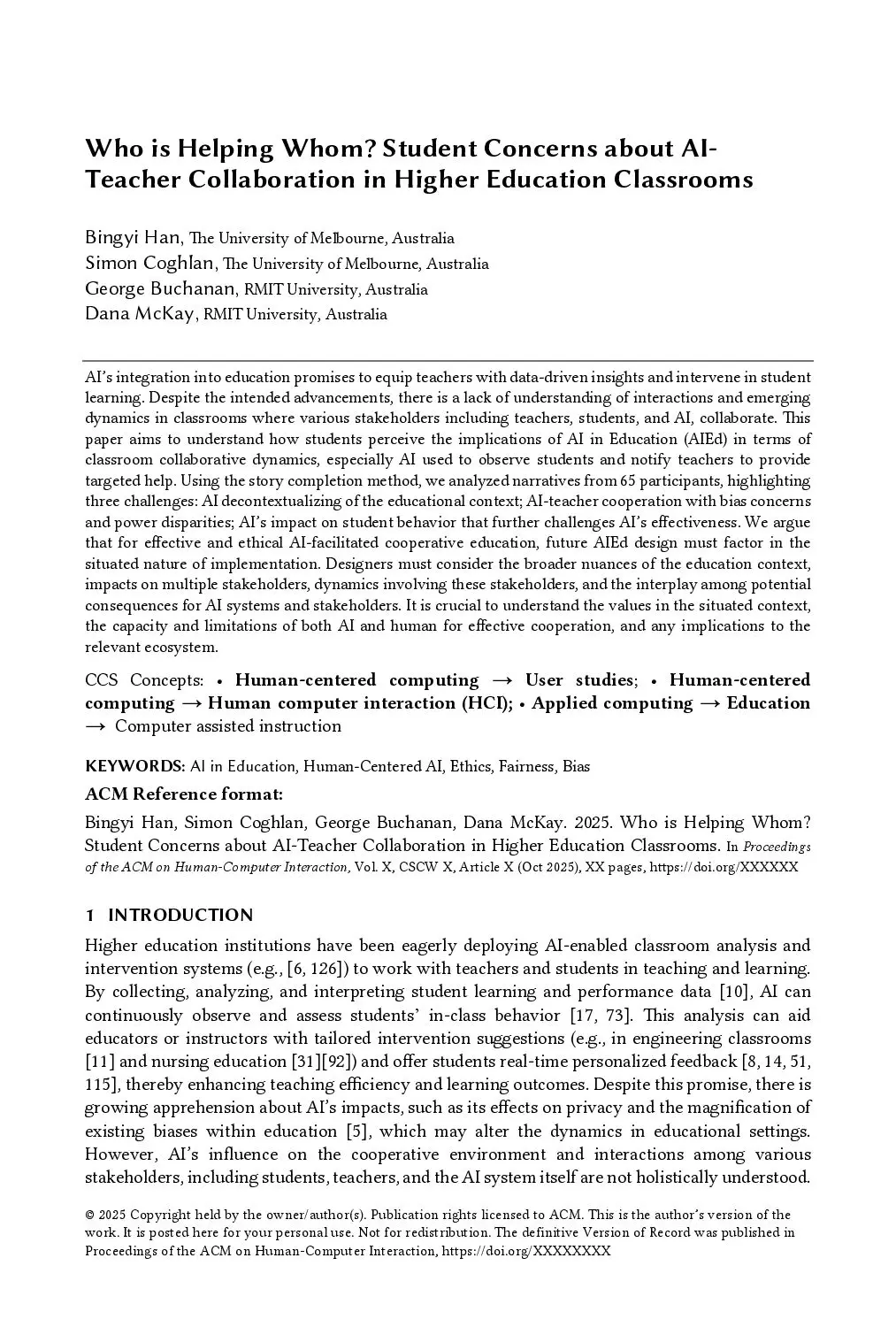 Who is Helping Whom? Student Concerns about AI- Teacher Collaboration in
