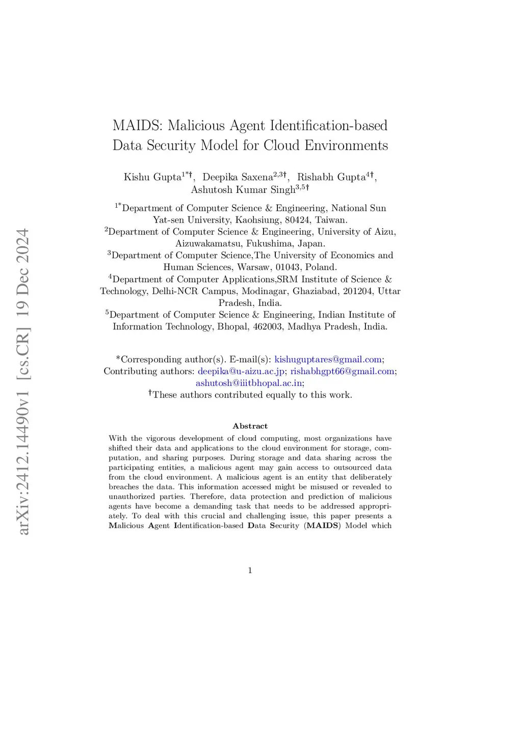 MAIDS: Malicious Agent Identification-based Data Security Model for
