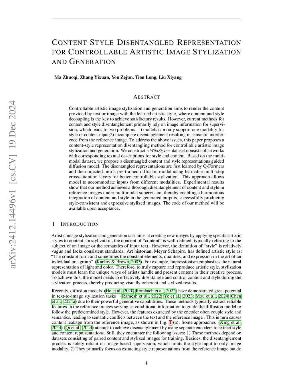 WikiStyle+: A Multimodal Approach to Content-Style Representation Disentanglement for Artistic Image Stylization