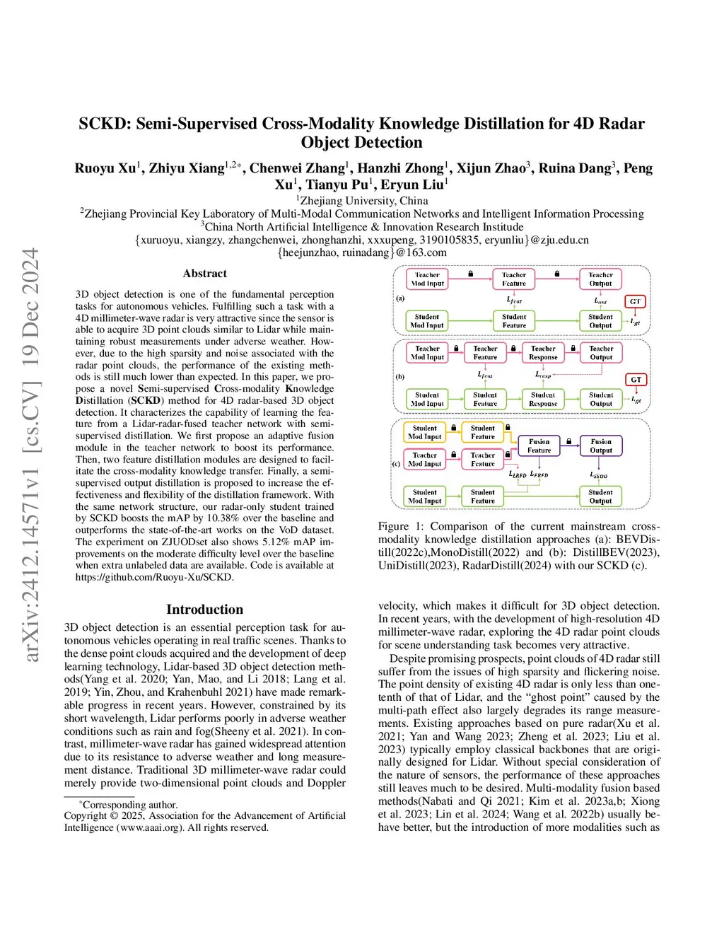 SCKD: Semi-Supervised Cross-Modality Knowledge Distillation for 4D Radar