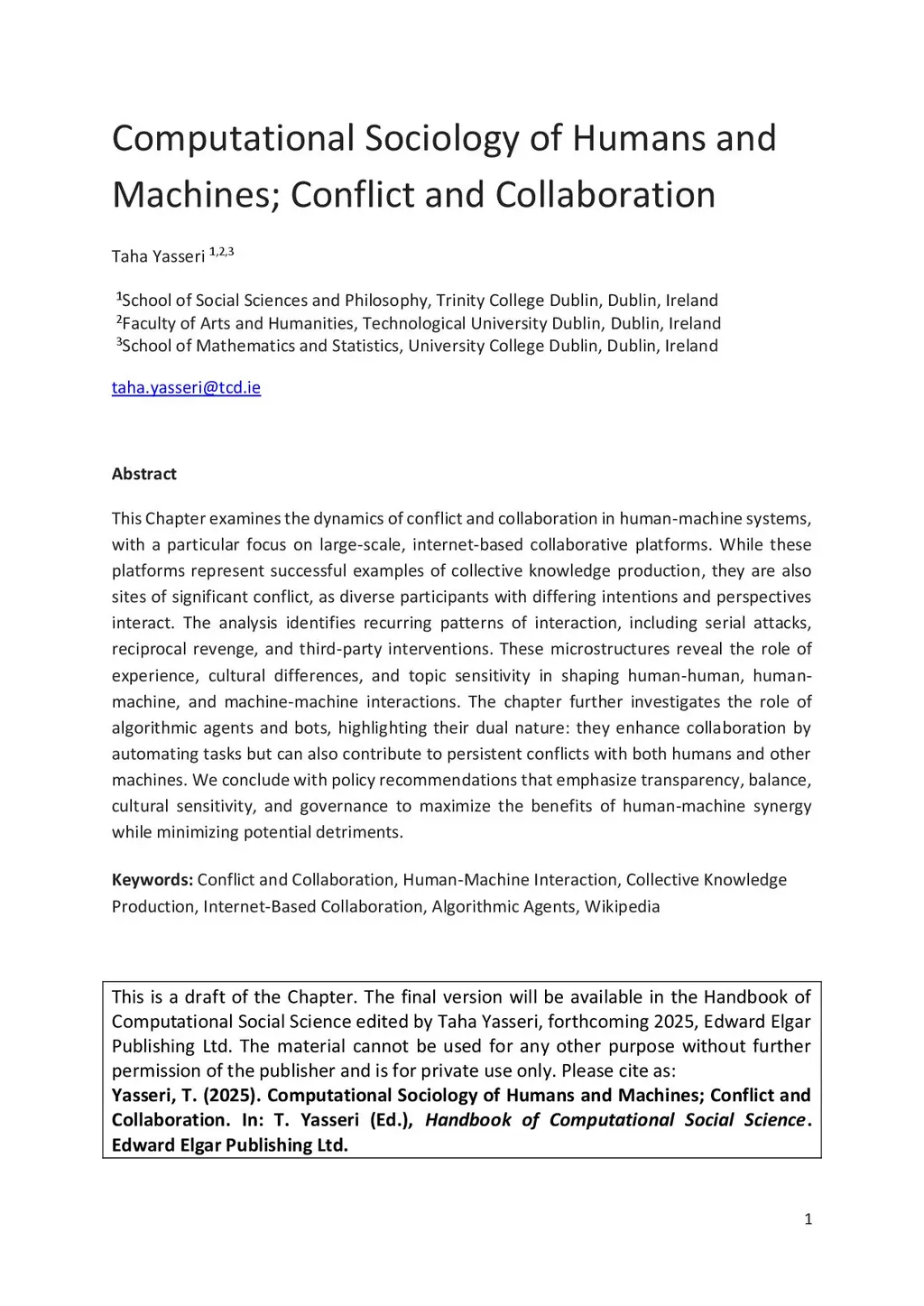 Computational Sociology of Humans and Machines; Conflict and
