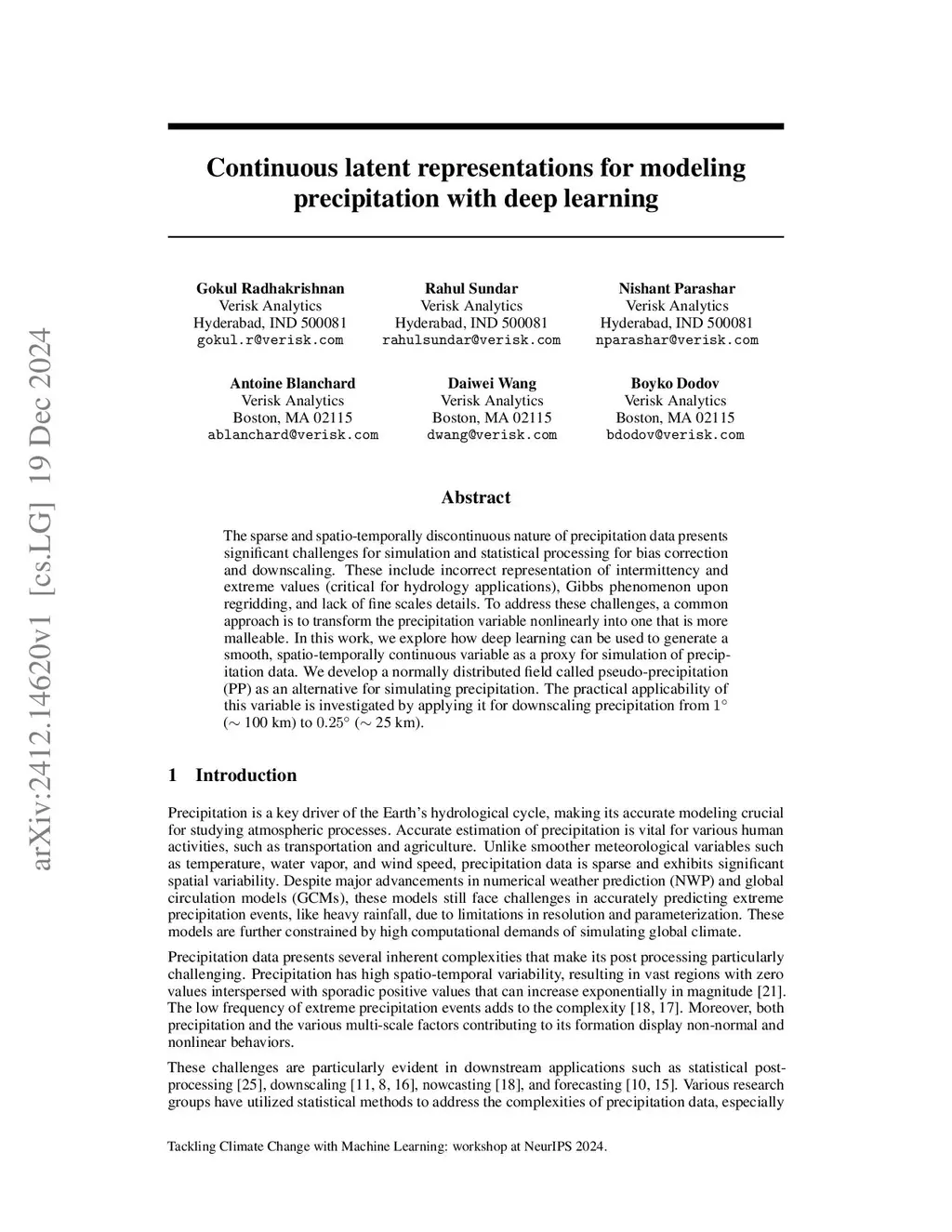 Continuous latent representations for modeling precipitation with deep