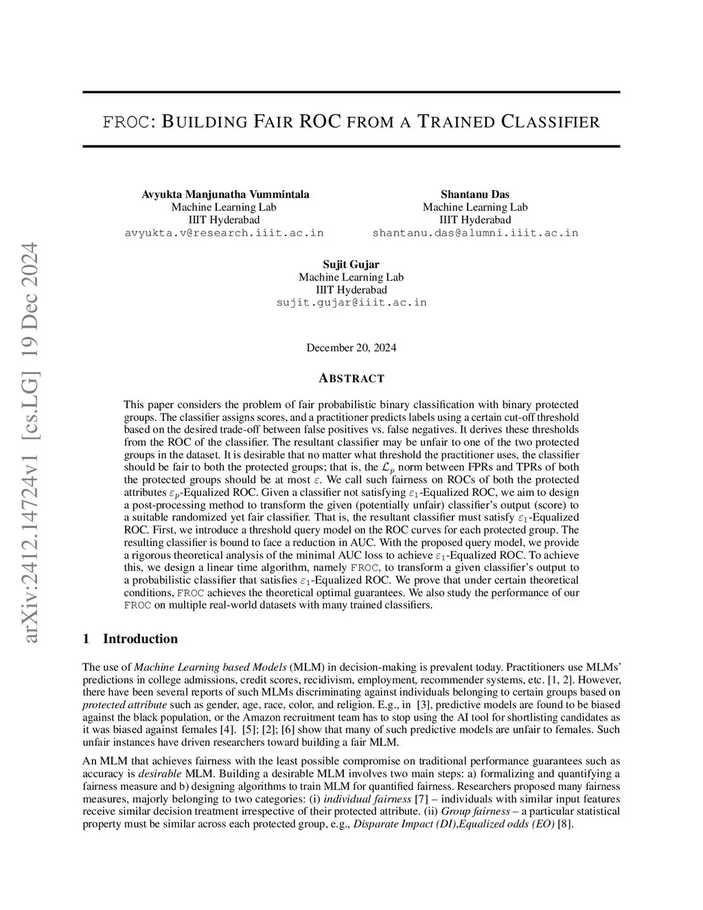 FROC: Building Fair ROC from a Trained Classifier