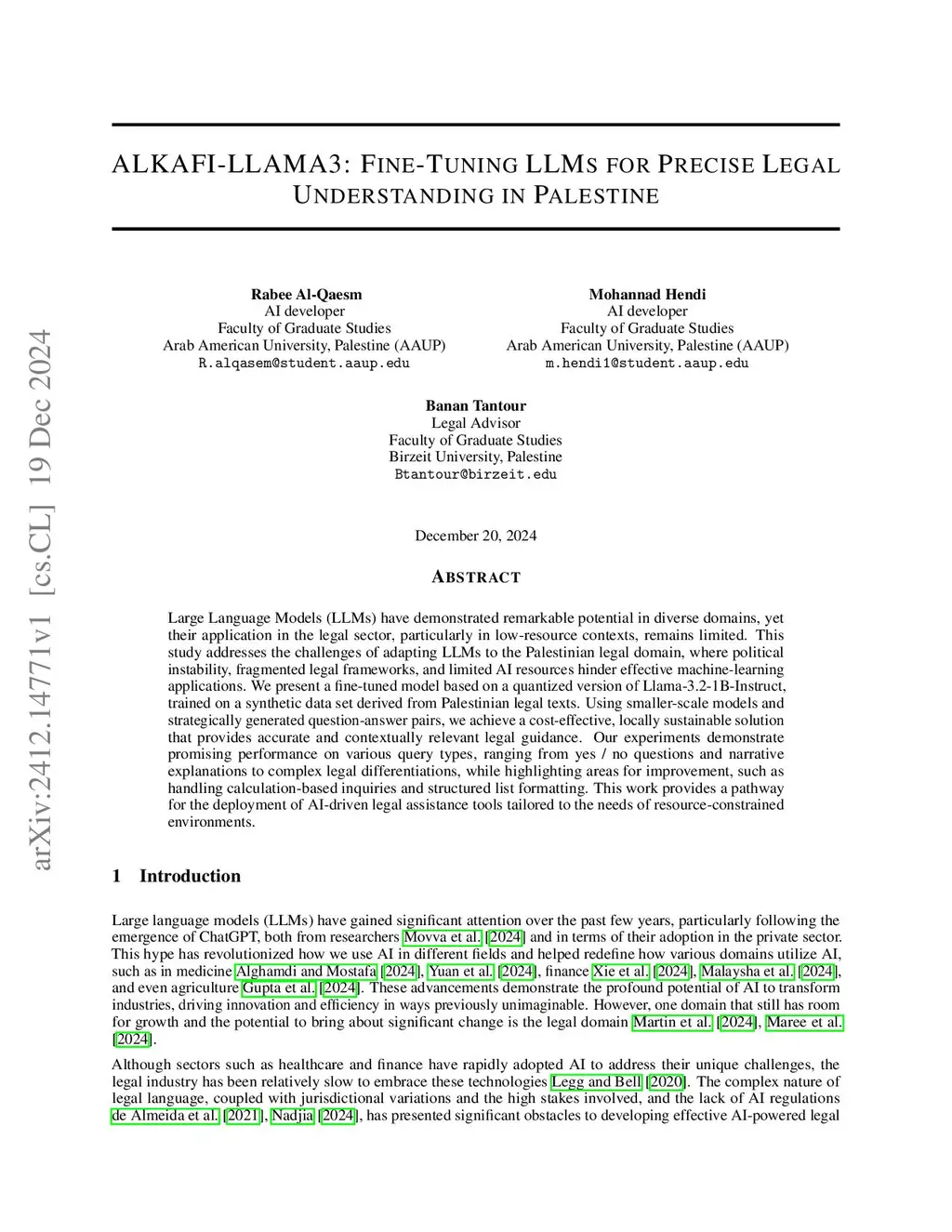 ALKAFI-LLAMA3: Fine-Tuning LLMs for Precise Legal Understanding in