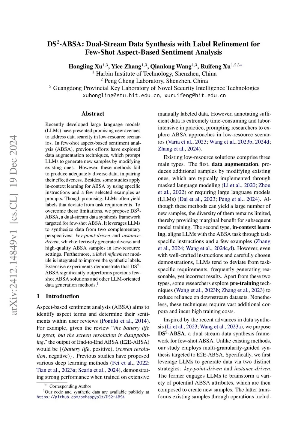 DS-ABSA: Dual-Stream Data Synthesis with Label Refinement for