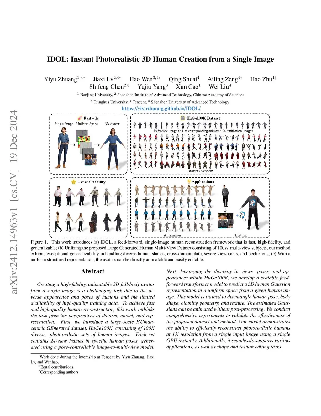 IDOL: Instant Photorealistic 3D Human Creation from a Single Image