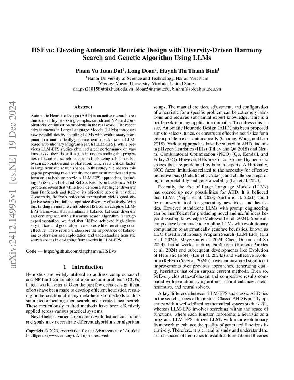 Harmony Search and Genetic Algorithm Using LLMs