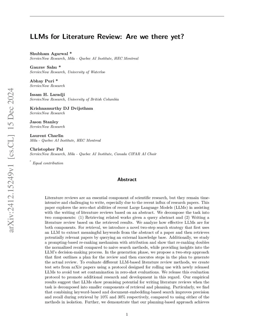LitLLMs, LLMs for Literature Review: Are we there yet?