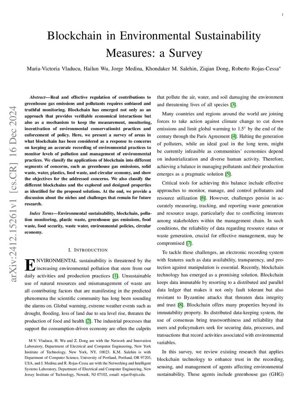 Blockchain in Environmental Sustainability Measures: a Survey