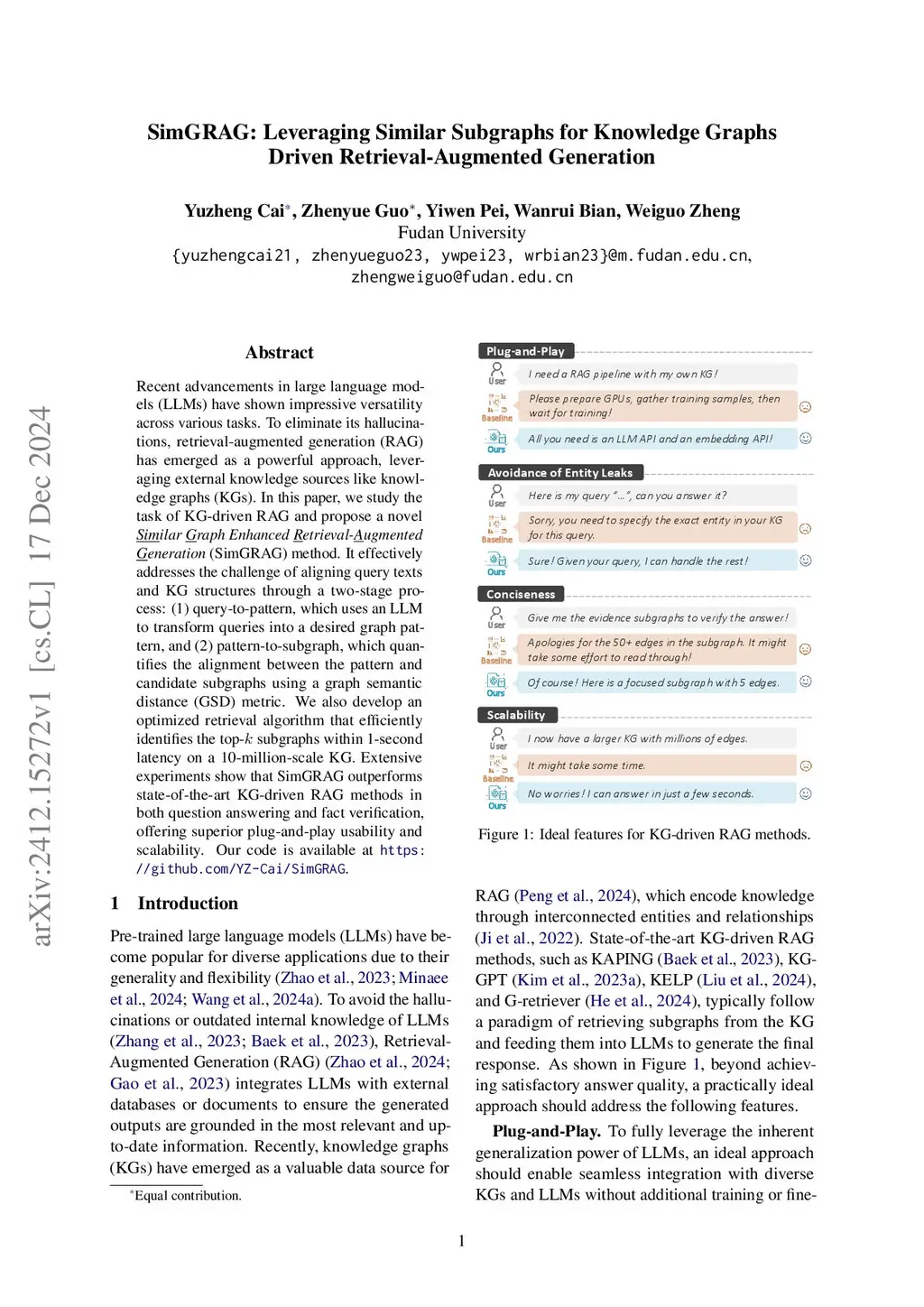 SimGRAG: Leveraging Similar Subgraphs for Knowledge Graphs Driven Retrieval-Augmented Generation