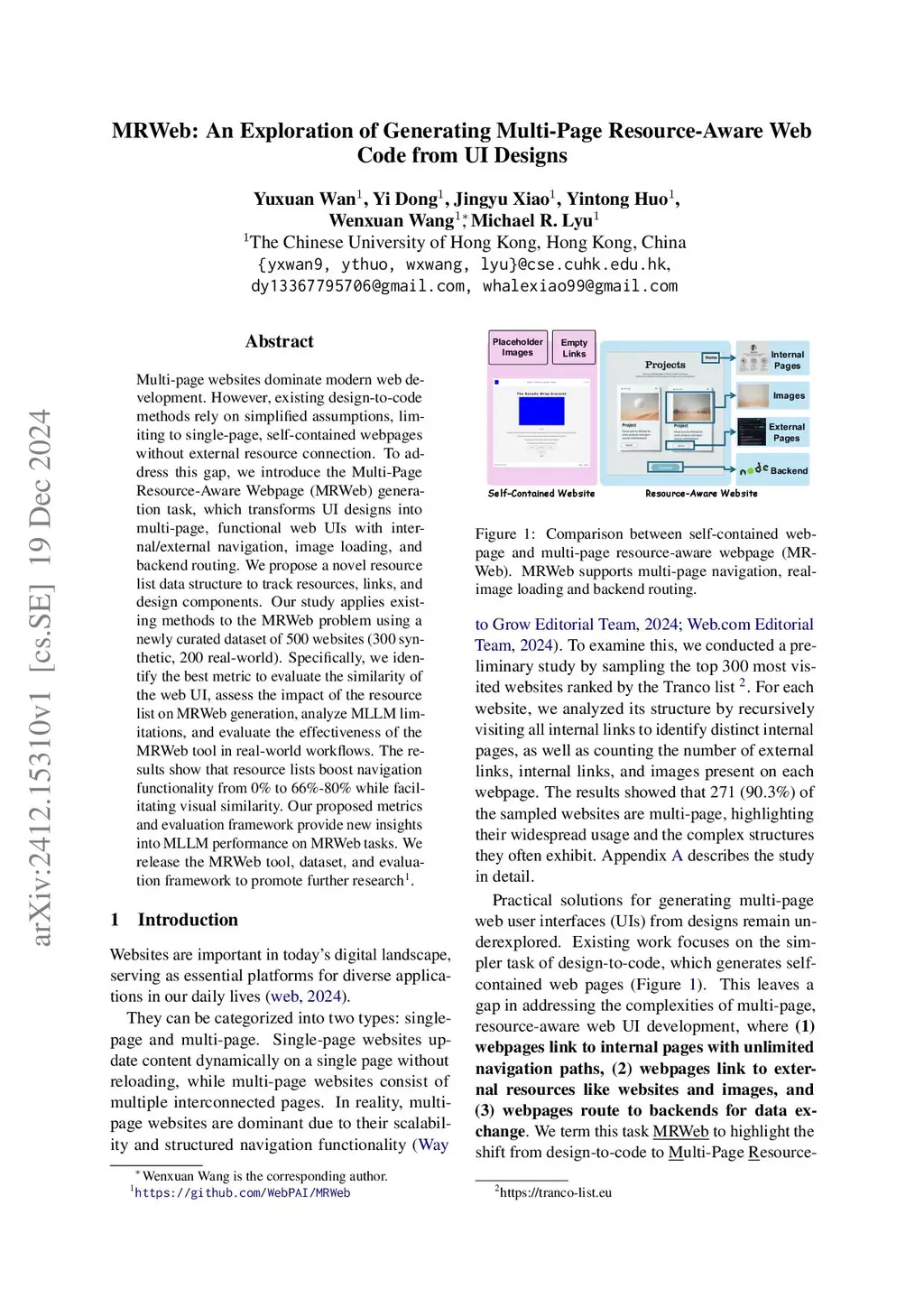 MRWeb: An Exploration of Generating Multi-Page Resource-Aware Web Code