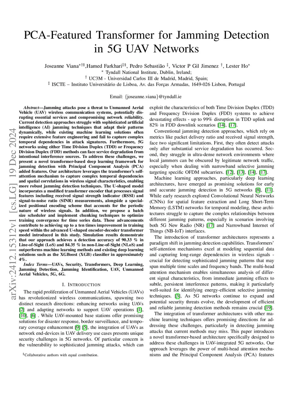 PCA-Featured Transformer for Jamming Detection in 5G UAV Networks
