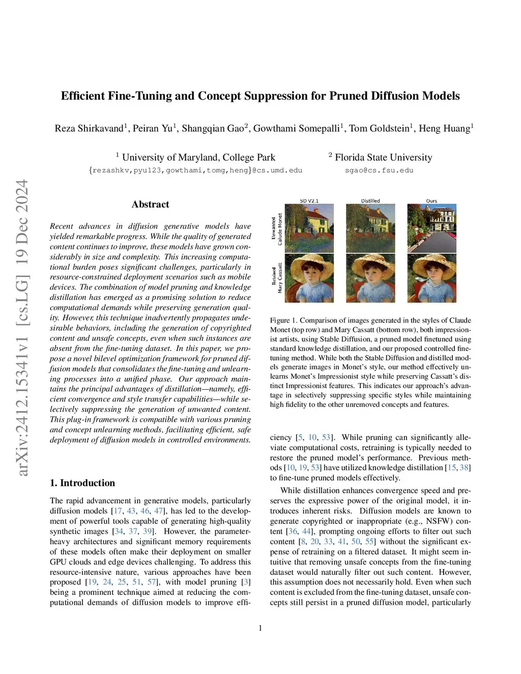Recent advances in diffusion generative models have yielded remarkable progress. While the quality of generated content continues to improve, these models have grown considerably in size and complexity. This increasing computational burden poses significant challenges, particularly in resource-constrained deployment scenarios such as mobile devices. The combination of model pruning and knowledge distillation has emerged as a promising solution to reduce computational demands while preserving generation quality. However, this technique inadvertently propagates undesirable behaviors, including the generation of copyrighted content and unsafe concepts, even when such instances are absent from the fine-tuning dataset. In this paper, we propose a novel bilevel optimization framework for pruned diffusion models that consolidates the fine-tuning and unlearning processes into a unified phase. Our approach maintains the principal advantages of distillation-namely, efficient convergence and style transfer capabilities-while selectively suppressing the generation of unwanted content. This plug-in framework is compatible with various pruning and concept unlearning methods, facilitating efficient, safe deployment of diffusion models in controlled environments.