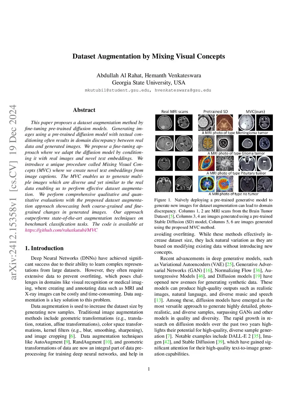 This paper proposes a dataset augmentation method by fine-tuning pre-trained diffusion models. Generating images using a pre-trained diffusion model with textual conditioning often results in domain discrepancy between real data and generated images. We propose a fine-tuning approach where we adapt the diffusion model by conditioning it with real images and novel text embeddings. We introduce a unique procedure called Mixing Visual Concepts (MVC) where we create novel text embeddings from image captions. The MVC enables us to generate multiple images which are diverse and yet similar to the real data enabling us to perform effective dataset augmentation. We perform comprehensive qualitative and quantitative evaluations with the proposed dataset augmentation approach showcasing both coarse-grained and finegrained changes in generated images. Our approach outperforms state-of-the-art augmentation techniques on benchmark classification tasks.