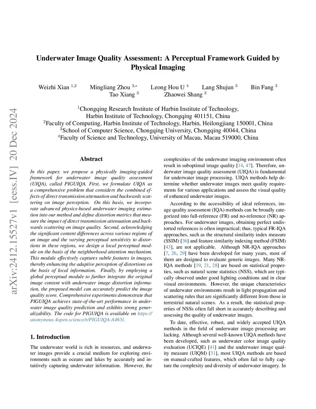 PIGUIQA: A Physical Imaging Guided Perceptual Framework for Underwater Image Quality Assessment