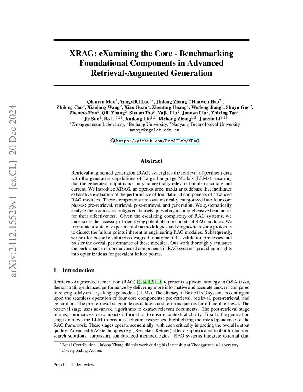 XRAG: eXamining the Core -- Benchmarking Foundational Components in Advanced Retrieval-Augmented Generation