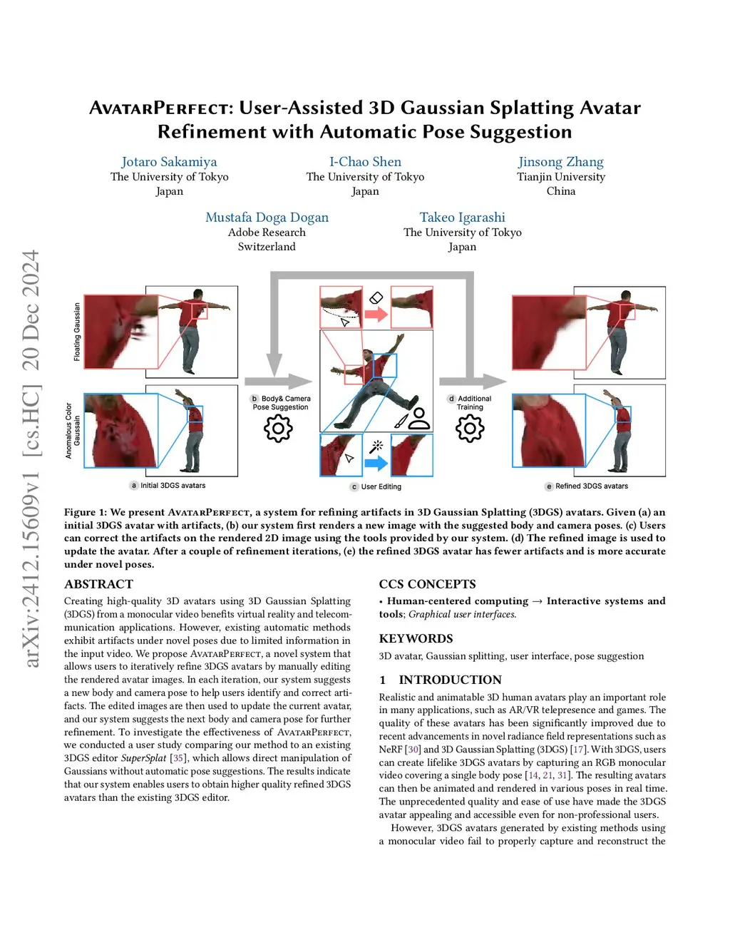 Creating high-quality 3D avatars using 3D Gaussian Splatting (3DGS) from a monocular video benefits virtual reality and telecommunication applications. However, existing automatic methods exhibit artifacts under novel poses due to limited information in the input video. We propose AvatarPerfect, a novel system that allows users to iteratively refine 3DGS avatars by manually editing the rendered avatar images. In each iteration, our system suggests a new body and camera pose to help users identify and correct artifacts. The edited images are then used to update the current avatar, and our system suggests the next body and camera pose for further refinement. To investigate the effectiveness of AvatarPerfect, we conducted a user study comparing our method to an existing 3DGS editor SuperSplat, which allows direct manipulation of Gaussians without automatic pose suggestions. The results indicate that our system enables users to obtain higher quality refined 3DGS avatars than the existing 3DGS editor.