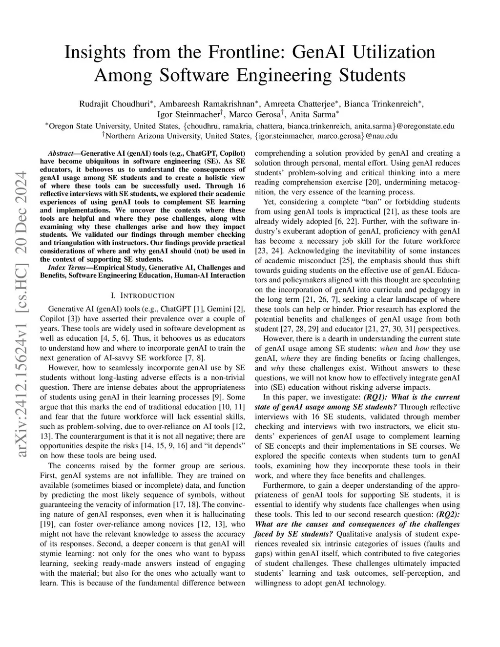 Generative AI (genAI) tools (e.g., ChatGPT, Copilot) have become ubiquitous in software engineering (SE). As SE educators, it behooves us to understand the consequences of genAI usage among SE students and to create a holistic view of where these tools can be successfully used. Through 16 reflective interviews with SE students, we explored their academic experiences of using genAI tools to complement SE learning and implementations. We uncover the contexts where these tools are helpful and where they pose challenges, along with examining why these challenges arise and how they impact students. We validated our findings through member checking and triangulation with instructors. Our findings provide practical considerations of where and why genAI should (not) be used in the context of supporting SE students.