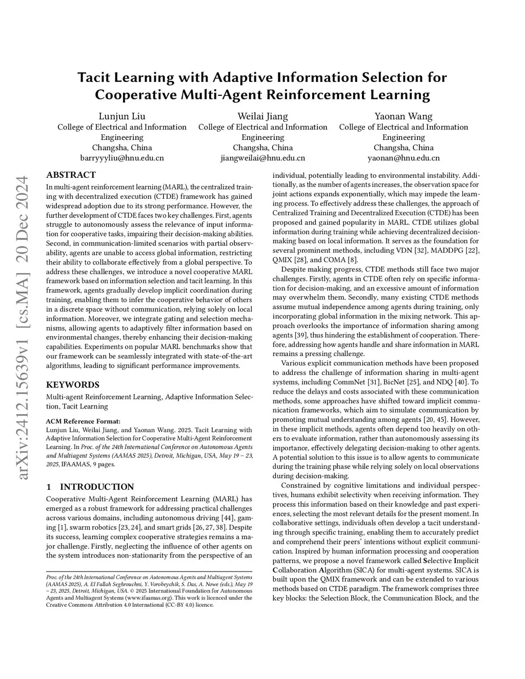 Tacit Learning with Adaptive Information Selection for Cooperative