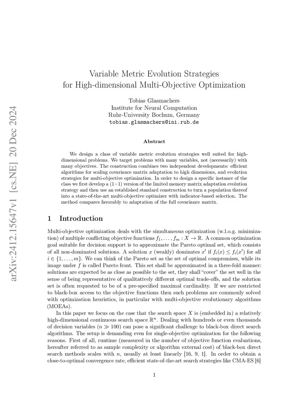 We design a class of variable metric evolution strategies well suited for high-dimensional problems. We target problems with many variables, not (necessarily) with many objectives. The construction combines two independent developments: efficient algorithms for scaling covariance matrix adaptation to high dimensions, and evolution strategies for multi-objective optimization. In order to design a specific instance of the class we first develop a (1+1) version of the limited memory matrix adaptation evolution strategy and then use an established standard construction to turn a population thereof into a state-of-the-art multi-objective optimizer with indicator-based selection. The method compares favorably to adaptation of the full covariance matrix.