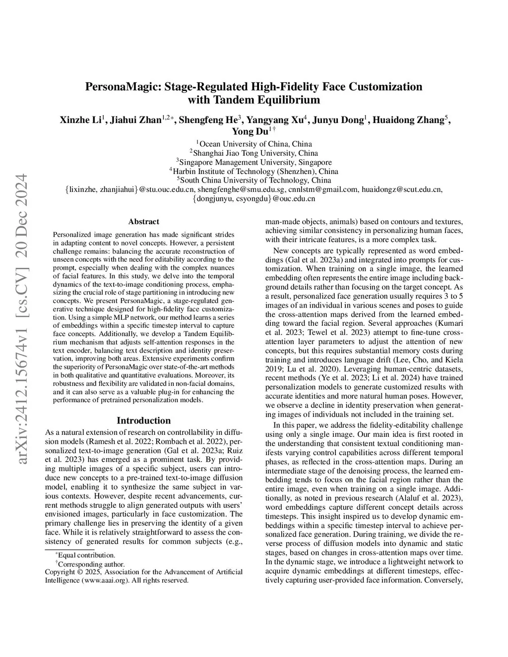 Personalized image generation has made significant strides in adapting content to novel concepts. However, a persistent challenge remains: balancing the accurate reconstruction of unseen concepts with the need for editability according to the prompt, especially when dealing with the complex nuances of facial features. In this study, we delve into the temporal dynamics of the text-to-image conditioning process, emphasizing the crucial role of stage partitioning in introducing new concepts. We present PersonaMagic, a stage-regulated generative technique designed for high-fidelity face customization. Using a simple MLP network, our method learns a series of embeddings within a specific timestep interval to capture face concepts. Additionally, we develop a Tandem Equilibrium mechanism that adjusts self-attention responses in the text encoder, balancing text description and identity preservation, improving both areas. Extensive experiments confirm the superiority of PersonaMagic over state-of-the-art methods in both qualitative and quantitative evaluations. Moreover, its robustness and flexibility are validated in non-facial domains, and it can also serve as a valuable plug-in for enhancing the performance of pretrained personalization models.