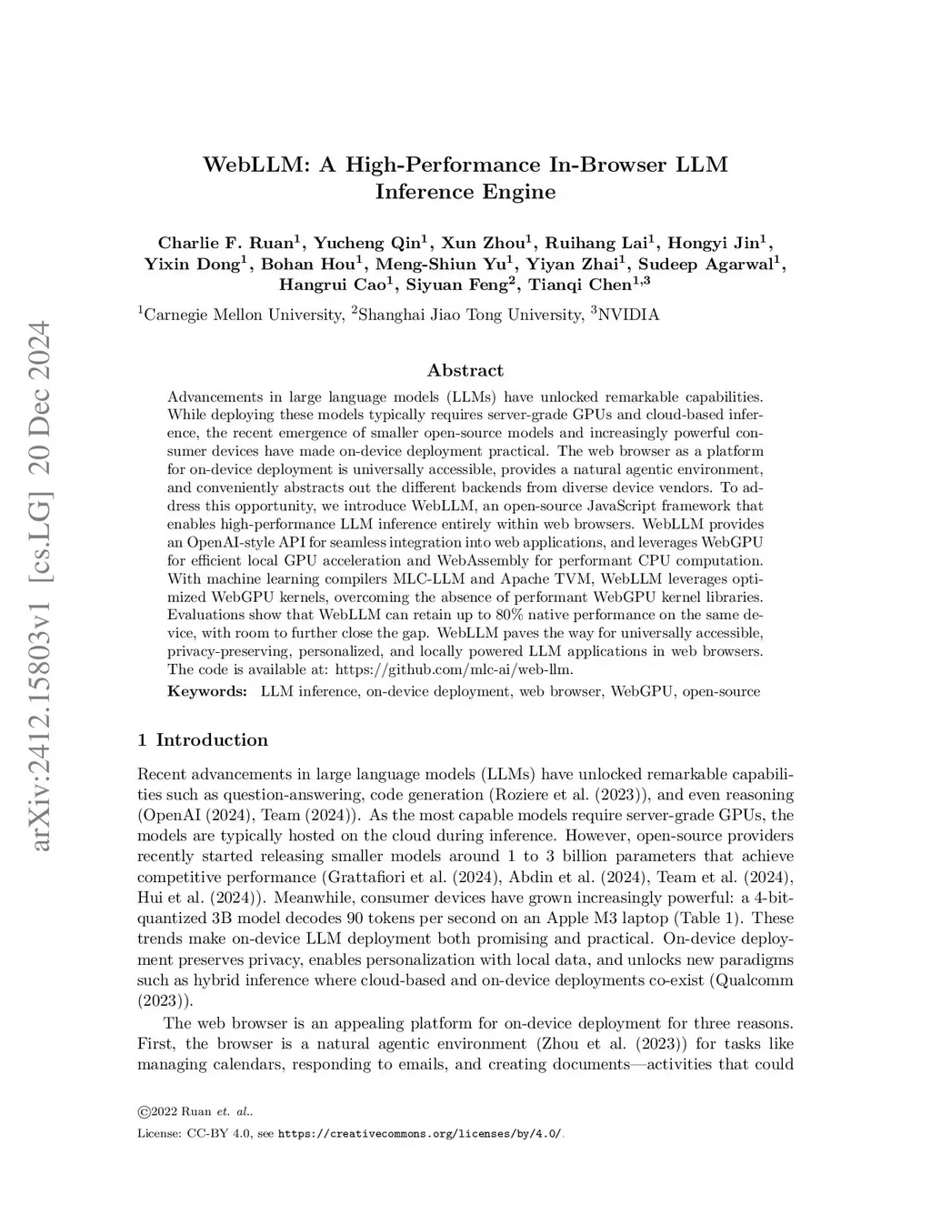 WebLLM: A High-Performance In-Browser LLM Inference Engine