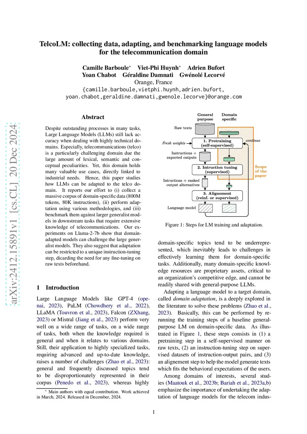 TelcoLM: collecting data, adapting, and benchmarking language models for
