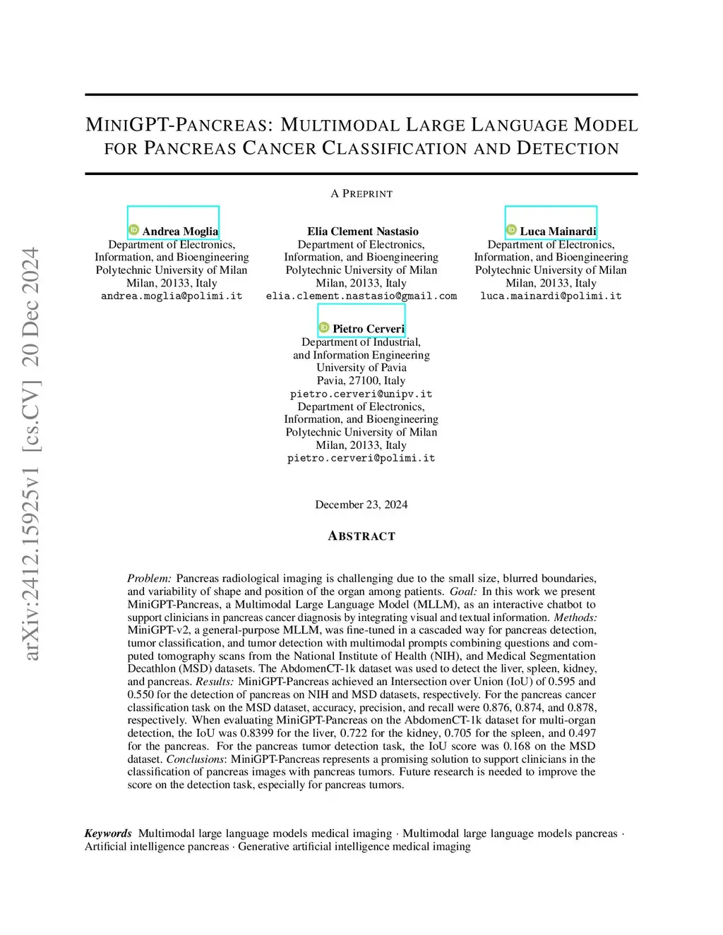 MiniGPT-Pancreas: Multimodal Large Language Model for Pancreas Cancer Classification and Detection