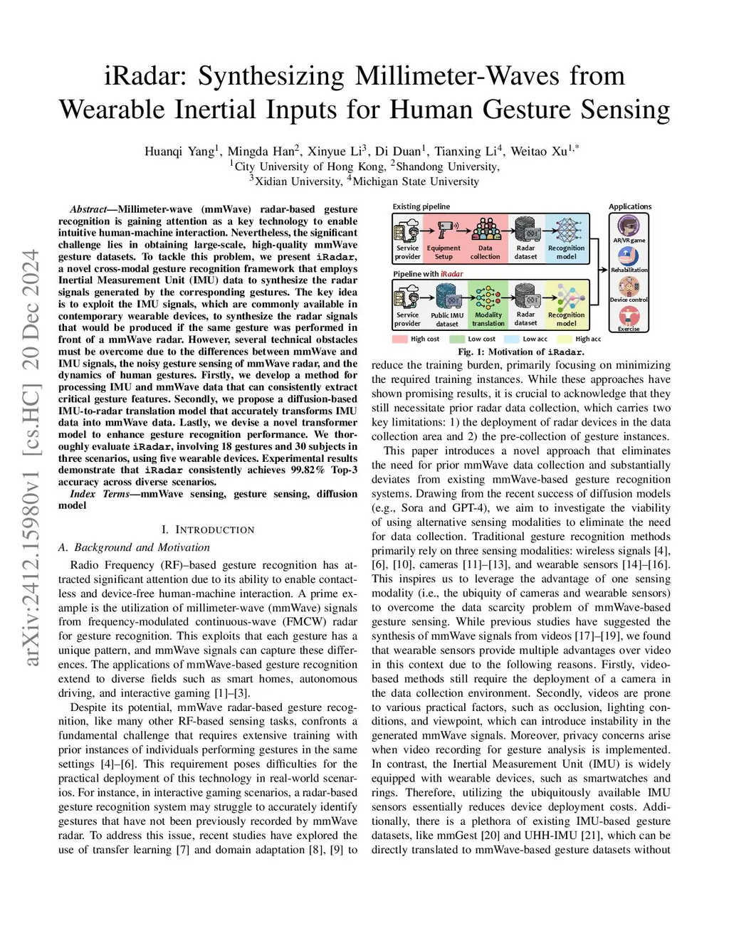 iRadar: Synthesizing Millimeter-Waves from Wearable Inertial Inputs for