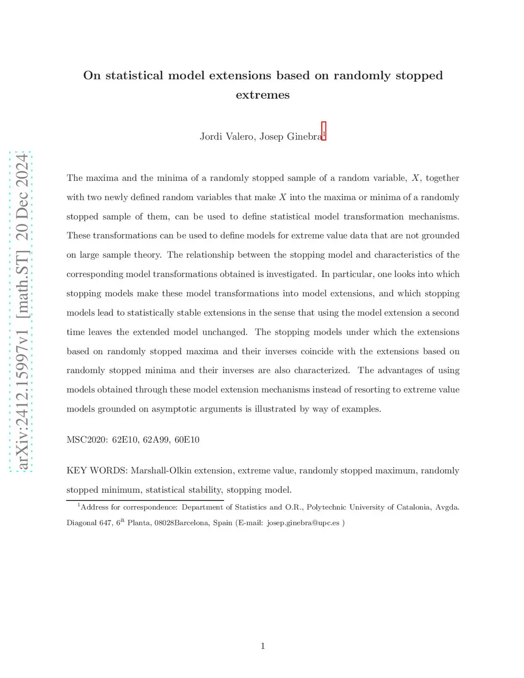 The maxima and the minima of a randomly stopped sample of a random variable, , together with two newly defined random variables that make into the maxima or minima of a randomly stopped sample of them, can be used to define statistical model transformation mechanisms. These transformations can be used to define models for extreme value data that are not grounded on large sample theory. The relationship between the stopping model and characteristics of the corresponding model transformations obtained is investigated. In particular, one looks into which stopping models make these model transformations into model extensions, and which stopping models lead to statistically stable extensions in the sense that using the model extension a second time leaves the extended model unchanged. The stopping models under which the extensions based on randomly stopped maxima and their inverses coincide with the extensions based on randomly stopped minima and their inverses are also characterized. The advantages of using models obtained through these model extension mechanisms instead of resorting to extreme value models grounded on asymptotic arguments is illustrated by way of examples.