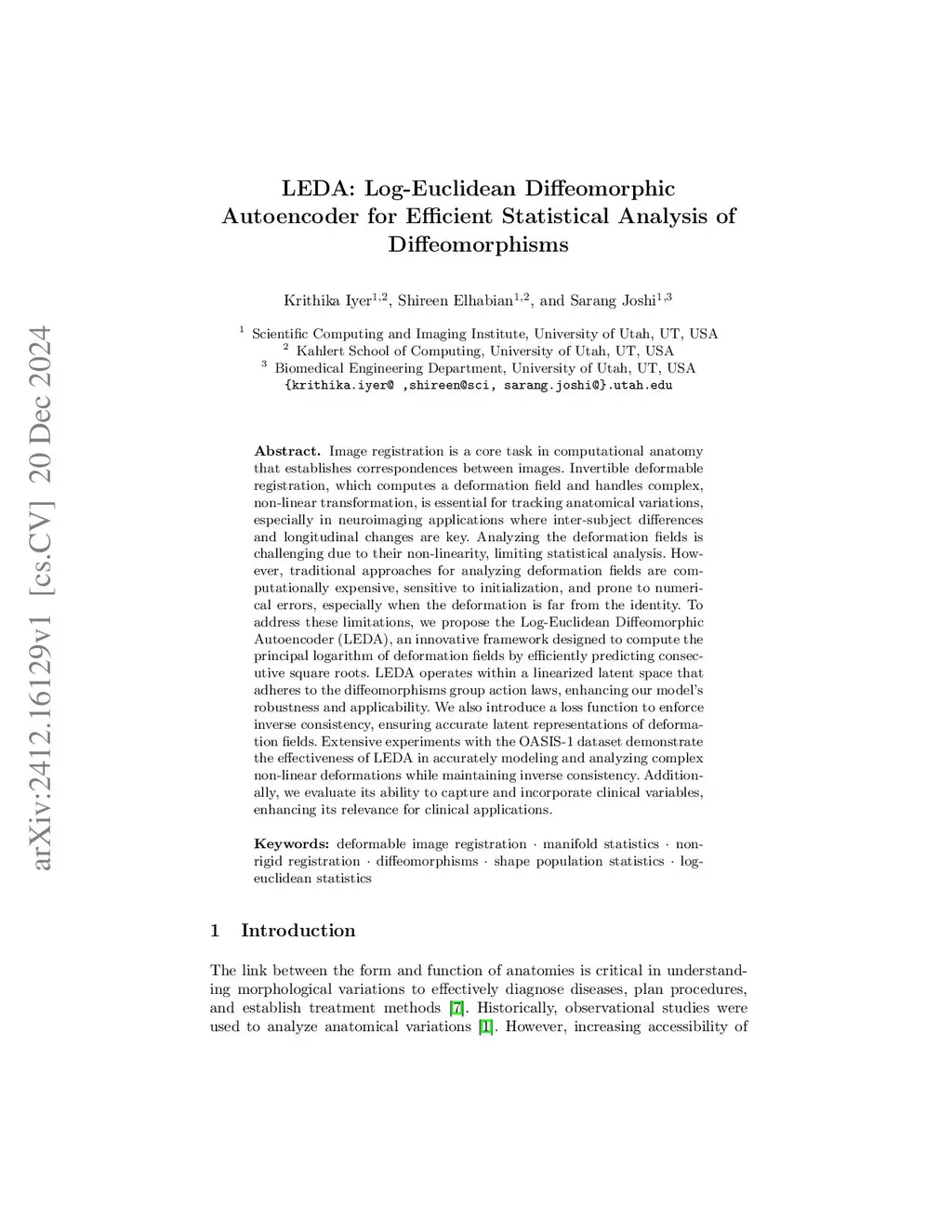 LEDA: Log-Euclidean Diffeomorphism Autoencoder for Efficient Statistical Analysis of Diffeomorphisms