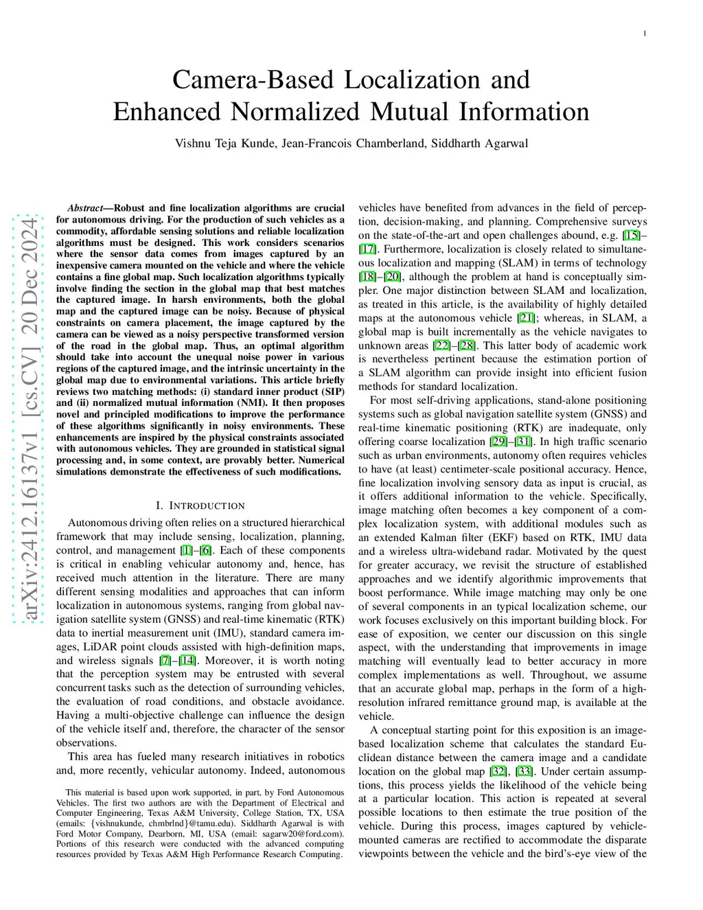 Camera-Based Localization and Enhanced Normalized Mutual Information