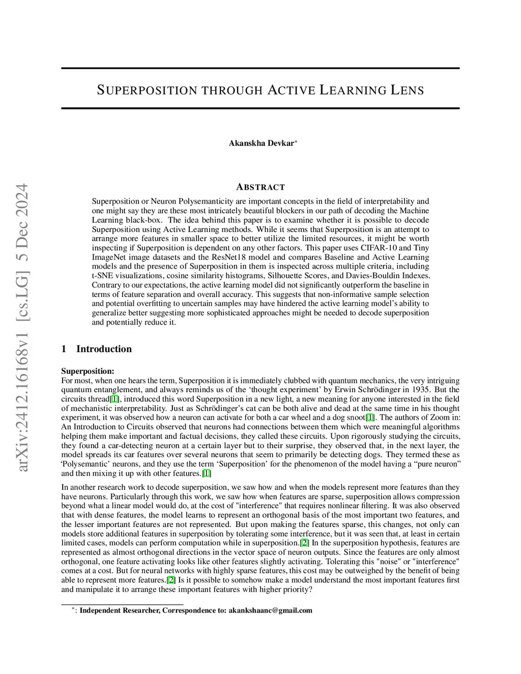 Superposition or Neuron Polysemanticity are important concepts in the field of interpretability and one might say they are these most intricately beautiful blockers in our path of decoding the Machine Learning black-box. The idea behind this paper is to examine whether it is possible to decode Superposition using Active Learning methods. While it seems that Superposition is an attempt to arrange more features in smaller space to better utilize the limited resources, it might be worth inspecting if Superposition is dependent on any other factors. This paper uses CIFAR-10 and Tiny ImageNet image datasets and the ResNet18 model and compares Baseline and Active Learning models and the presence of Superposition in them is inspected across multiple criteria, including t-SNE visualizations, cosine similarity histograms, Silhouette Scores, and Davies-Bouldin Indexes. Contrary to our expectations, the active learning model did not significantly outperform the baseline in terms of feature separation and overall accuracy. This suggests that non-informative sample selection and potential overfitting to uncertain samples may have hindered the active learning model's ability to generalize better suggesting more sophisticated approaches might be needed to decode superposition and potentially reduce it.