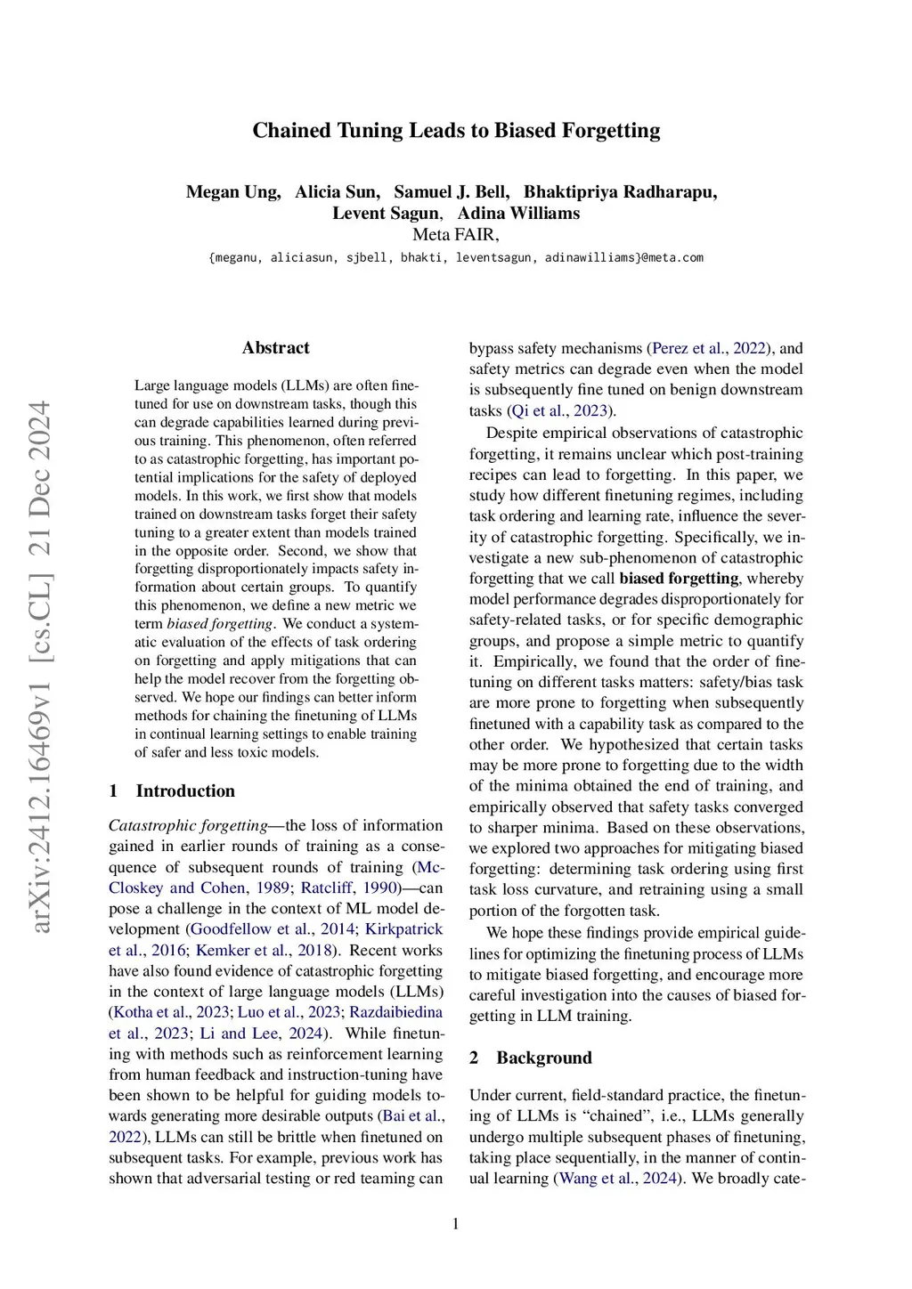 Chained Tuning Leads to Biased Forgetting