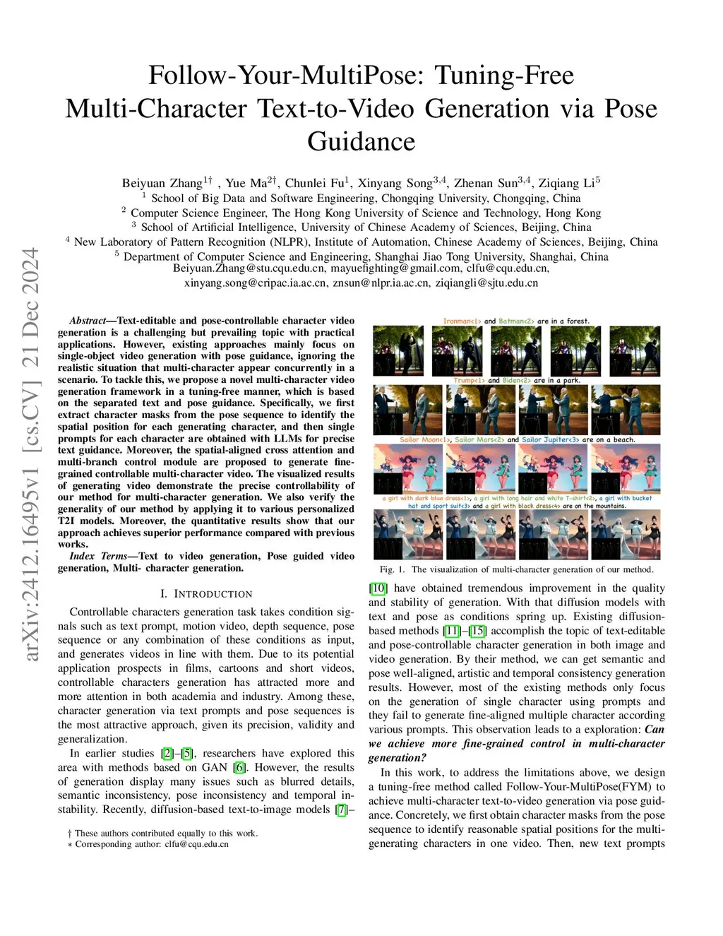 Follow-Your-MultiPose: Tuning-Free Multi-Character Text-to-Video