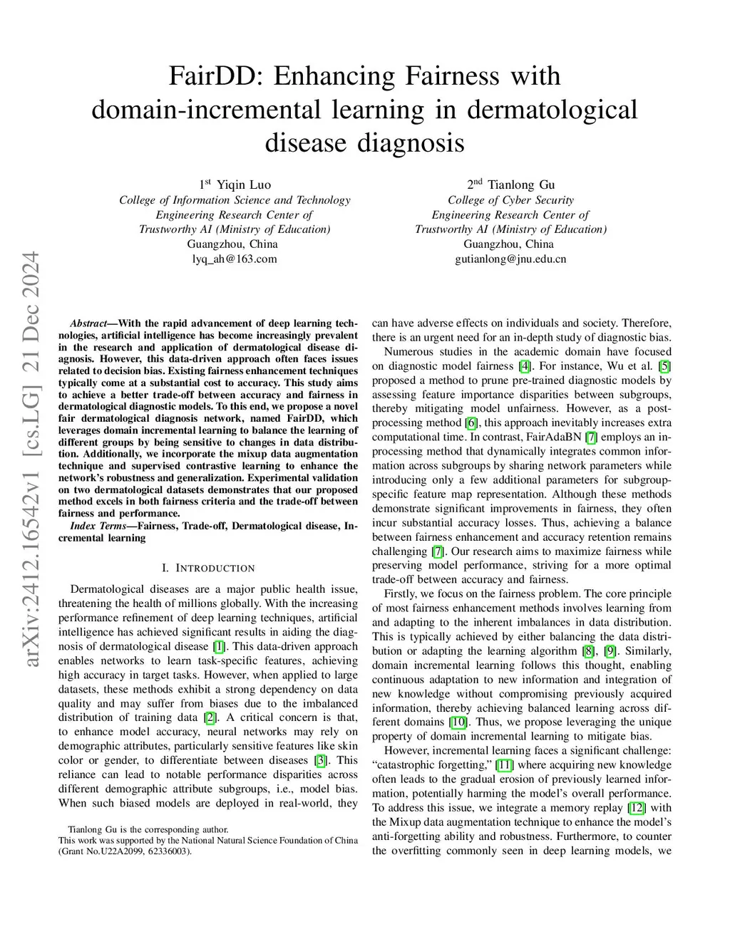 With the rapid advancement of deep learning technologies, artificial intelligence has become increasingly prevalent in the research and application of dermatological disease diagnosis. However, this data-driven approach often faces issues related to decision bias. Existing fairness enhancement techniques typically come at a substantial cost to accuracy. This study aims to achieve a better trade-off between accuracy and fairness in dermatological diagnostic models. To this end, we propose a novel fair dermatological diagnosis network, named FairDD, which leverages domain incremental learning to balance the learning of different groups by being sensitive to changes in data distribution. Additionally, we incorporate the mixup data augmentation technique and supervised contrastive learning to enhance the network's robustness and generalization. Experimental validation on two dermatological datasets demonstrates that our proposed method excels in both fairness criteria and the trade-off between fairness and performance.