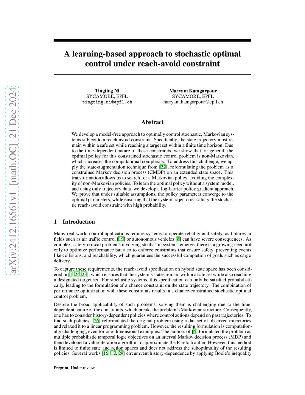 A learning-based approach to stochastic optimal control under reach-avoid constraint