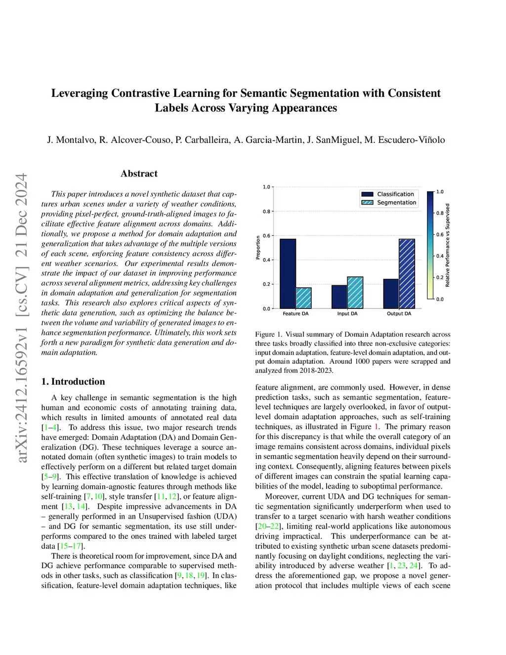 This paper introduces a novel synthetic dataset that captures urban scenes under a variety of weather conditions, providing pixel-perfect, ground-truth-aligned images to facilitate effective feature alignment across domains. Additionally, we propose a method for domain adaptation and generalization that takes advantage of the multiple versions of each scene, enforcing feature consistency across different weather scenarios. Our experimental results demonstrate the impact of our dataset in improving performance across several alignment metrics, addressing key challenges in domain adaptation and generalization for segmentation tasks. This research also explores critical aspects of synthetic data generation, such as optimizing the balance between the volume and variability of generated images to enhance segmentation performance. Ultimately, this work sets forth a new paradigm for synthetic data generation and domain adaptation.