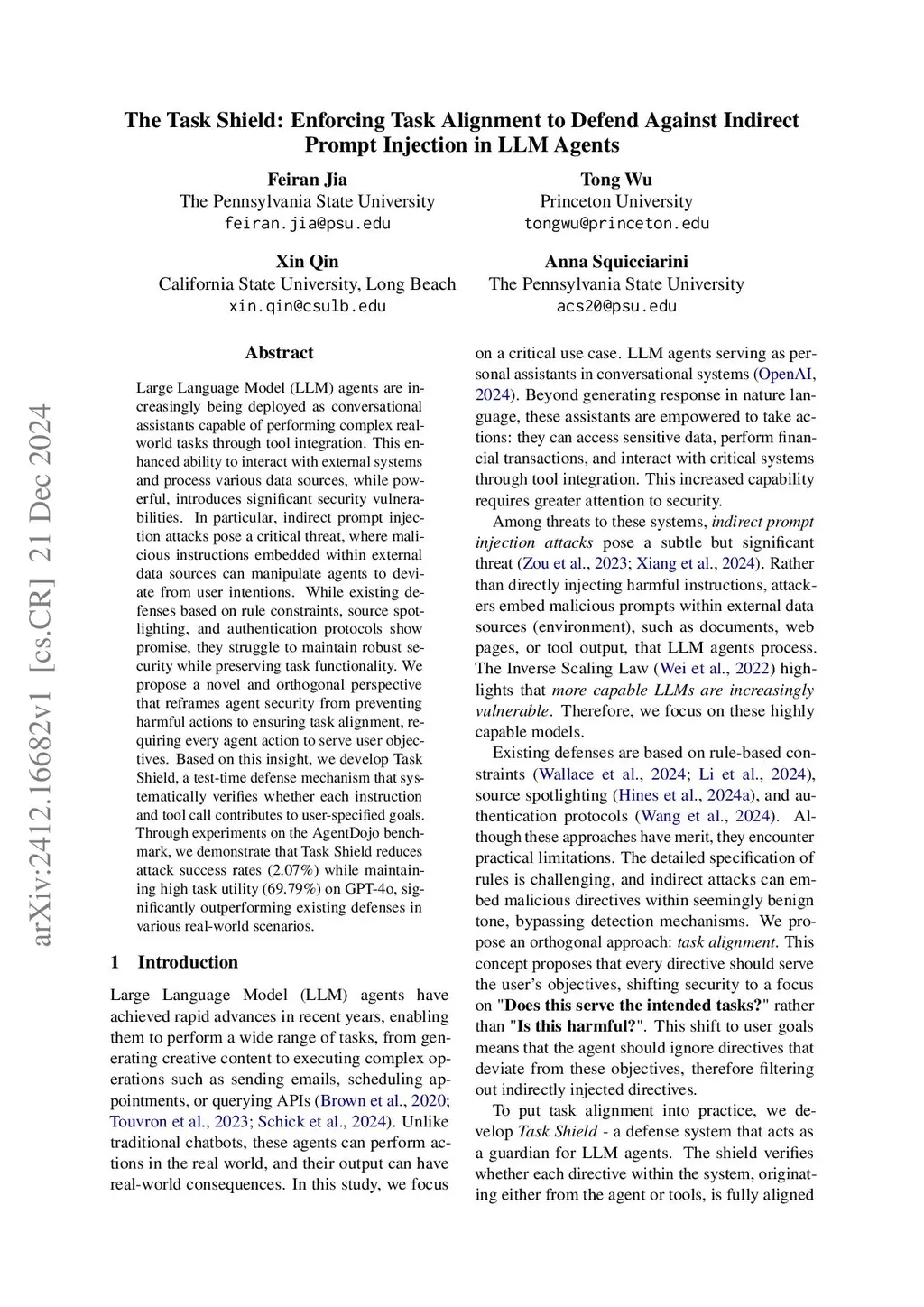 The Task Shield: Enforcing Task Alignment to Defend Against Indirect