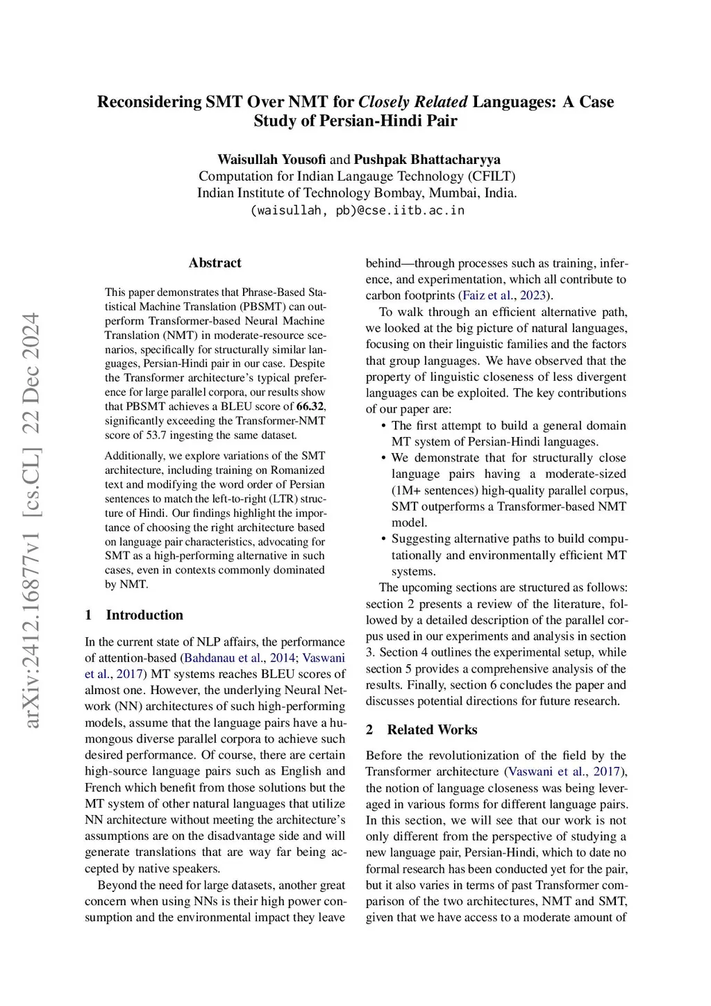 This paper demonstrates that Phrase-Based Statistical Machine Translation (PBSMT) can outperform Transformer-based Neural Machine Translation (NMT) in moderate-resource scenarios, specifically for structurally similar languages, like the Persian-Hindi pair. Despite the Transformer architecture's typical preference for large parallel corpora, our results show that PBSMT achieves a BLEU score of 66.32, significantly exceeding the Transformer-NMT score of 53.7 on the same dataset. Additionally, we explore variations of the SMT architecture, including training on Romanized text and modifying the word order of Persian sentences to match the left-to-right (LTR) structure of Hindi. Our findings highlight the importance of choosing the right architecture based on language pair characteristics and advocate for SMT as a high-performing alternative, even in contexts commonly dominated by NMT.