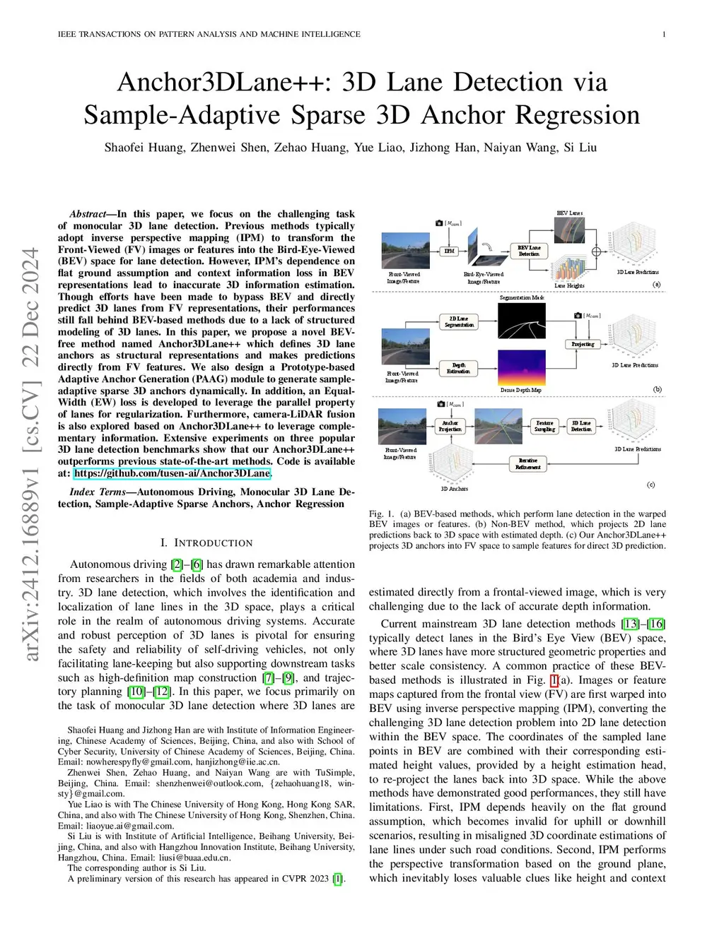 Anchor3DLane++: 3D Lane Detection via Sample-Adaptive Sparse 3D Anchor