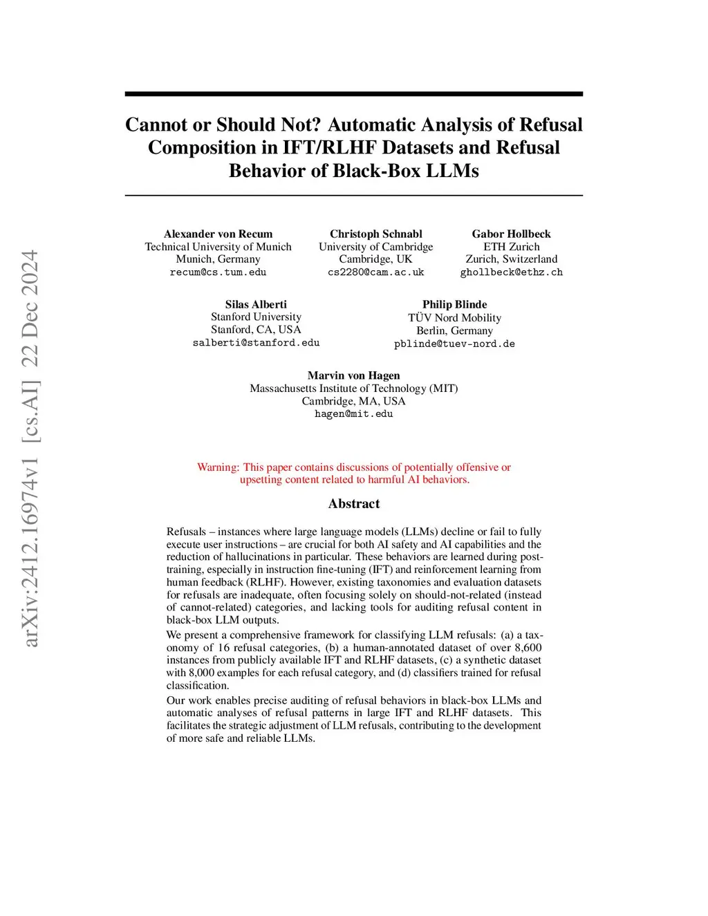 Cannot or Should Not? Automatic Analysis of Refusal Composition in