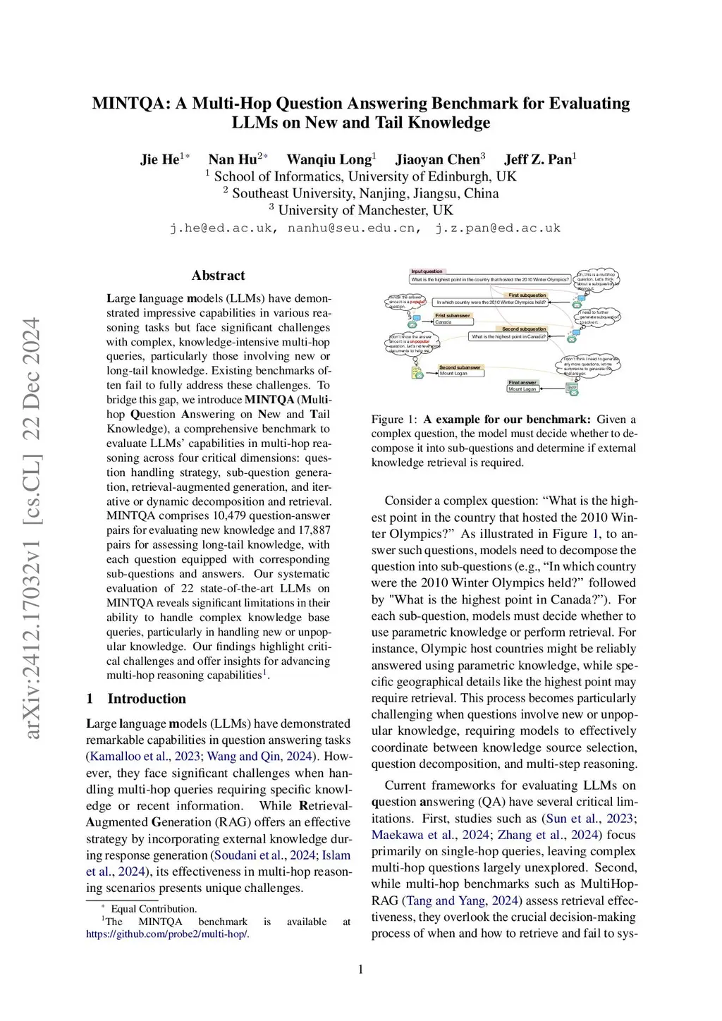 MINTQA: A Multi-Hop Question Answering Benchmark for Evaluating LLMs on New and Tail Knowledge