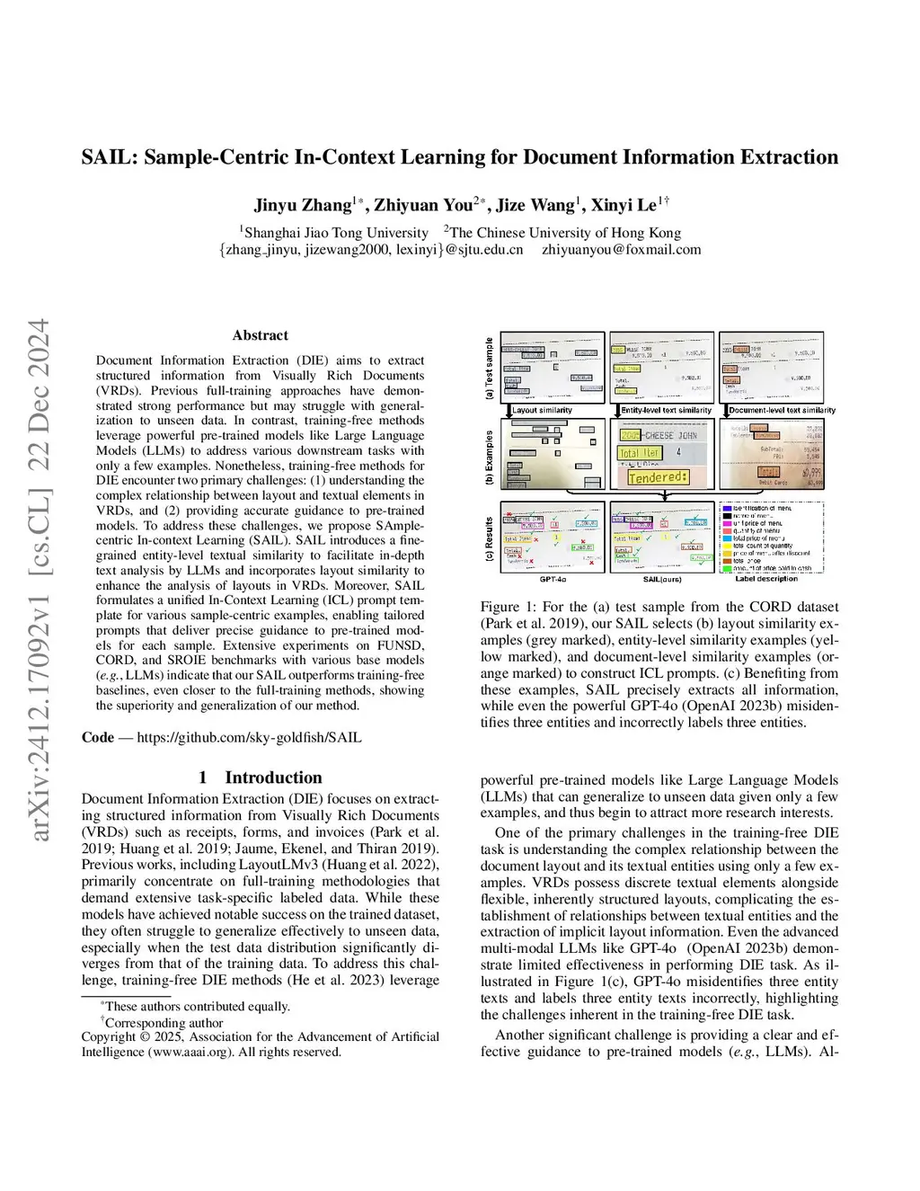 SAIL: Sample-Centric In-Context Learning for Document Information