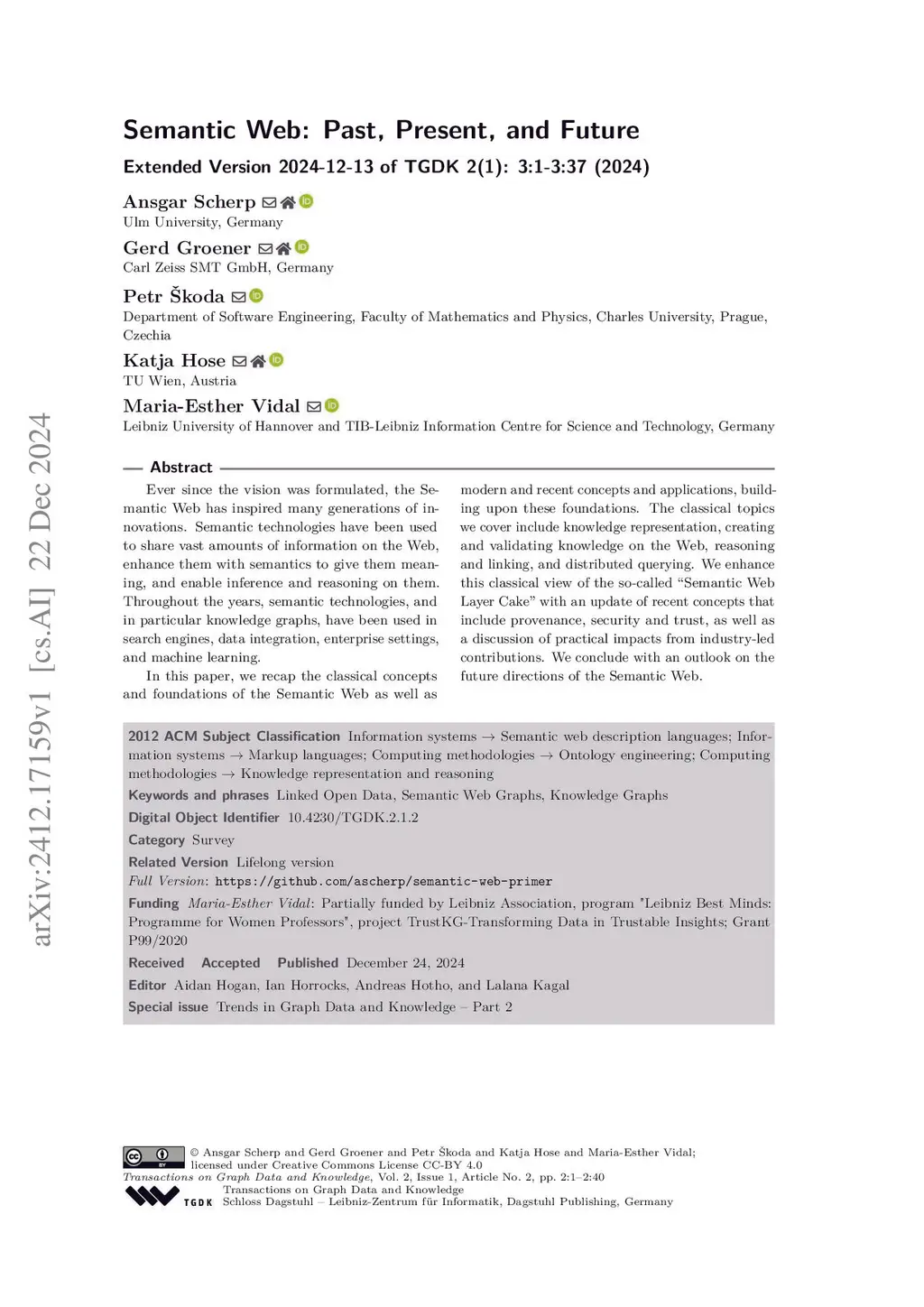 Semantic Web: Past, Present, and Future (with Machine Learning on Knowledge Graphs and Language Models on Knowledge Graphs)